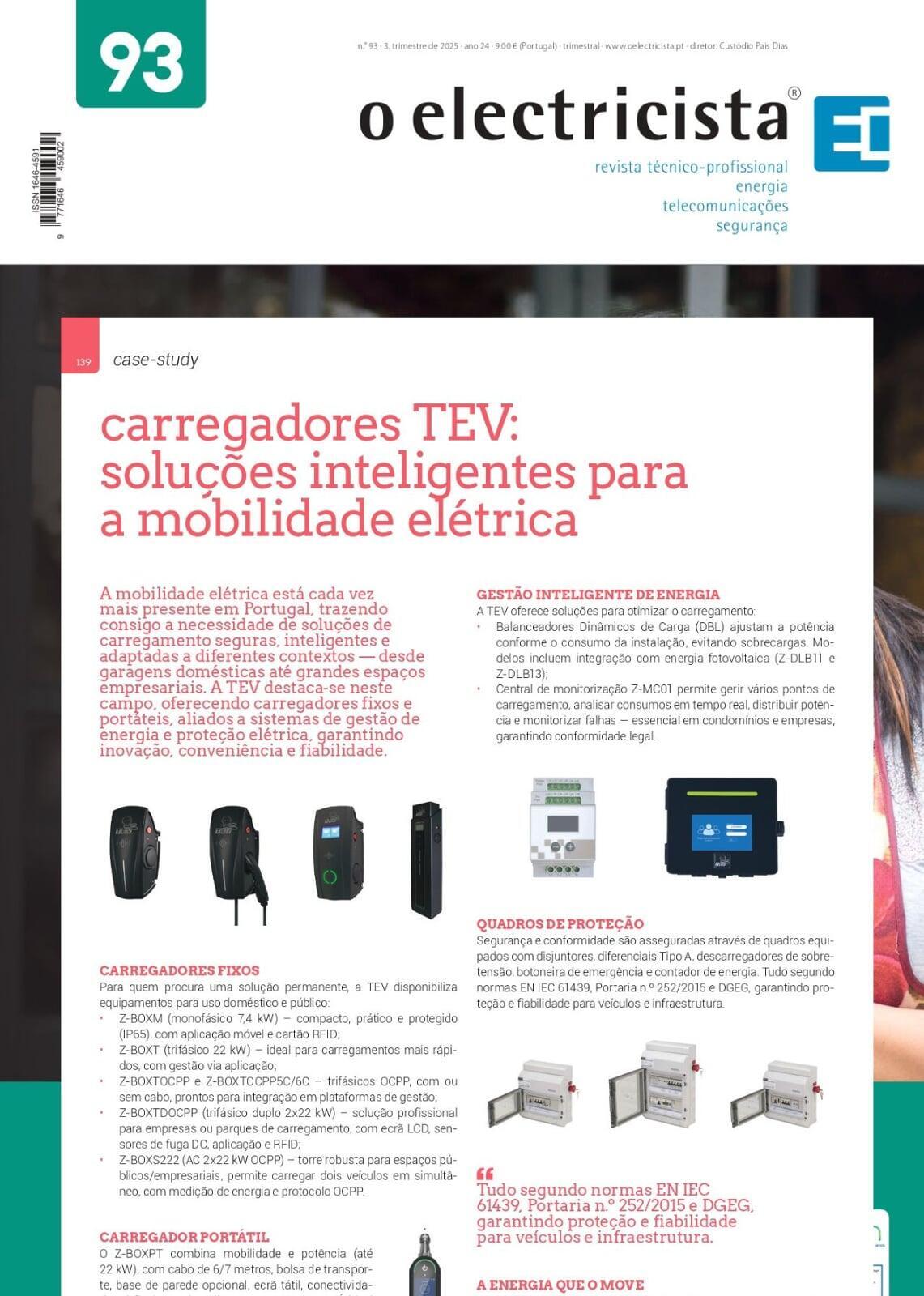 A TEV2 marca presença na edição n.º 93 da revista O Electricista, reforçando a sua posição como referência em soluções para automação e mobilidade elétrica.